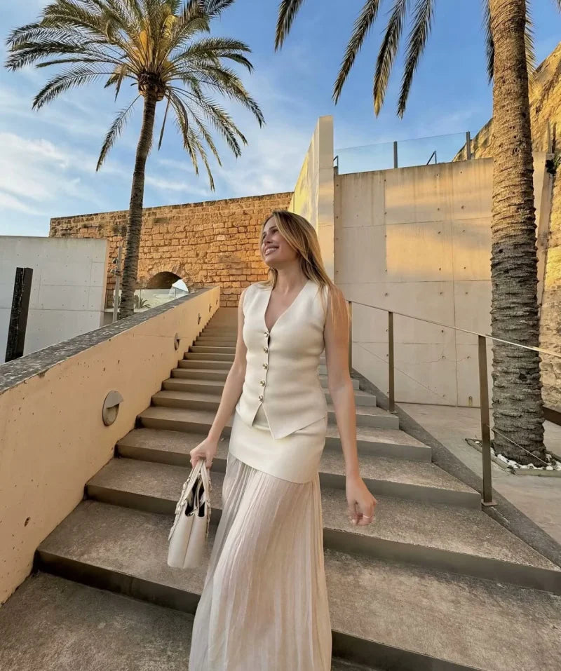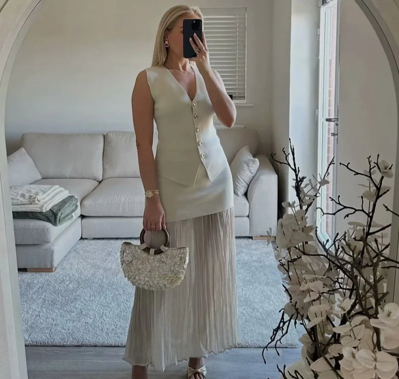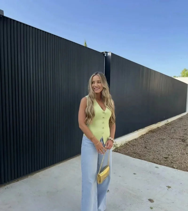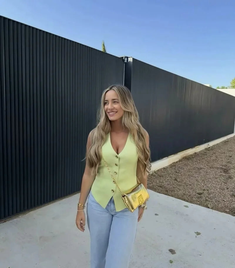 Apresentamos o Colete Elegante Feminino com Decote V, uma peça essencial para quem busca sofisticação e versatilidade. Com um design all-match, este colete sem mangas é perfeito para qualquer ocasião, seja para um dia casual ou um evento especial.