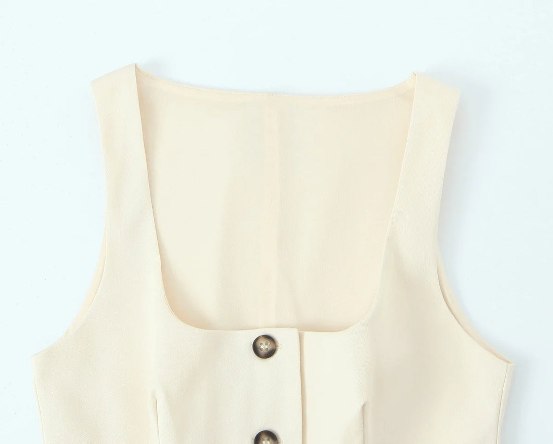 Descubra o charme e a elegância do Colete Feminino Chique Sem Mangas, uma peça essencial para quem busca um visual sofisticado e moderno. Com um design clássico de pescoço quadrado e botões elegantes, este colete é perfeito para o ambiente de trabalho ou para ocasiões especiais.