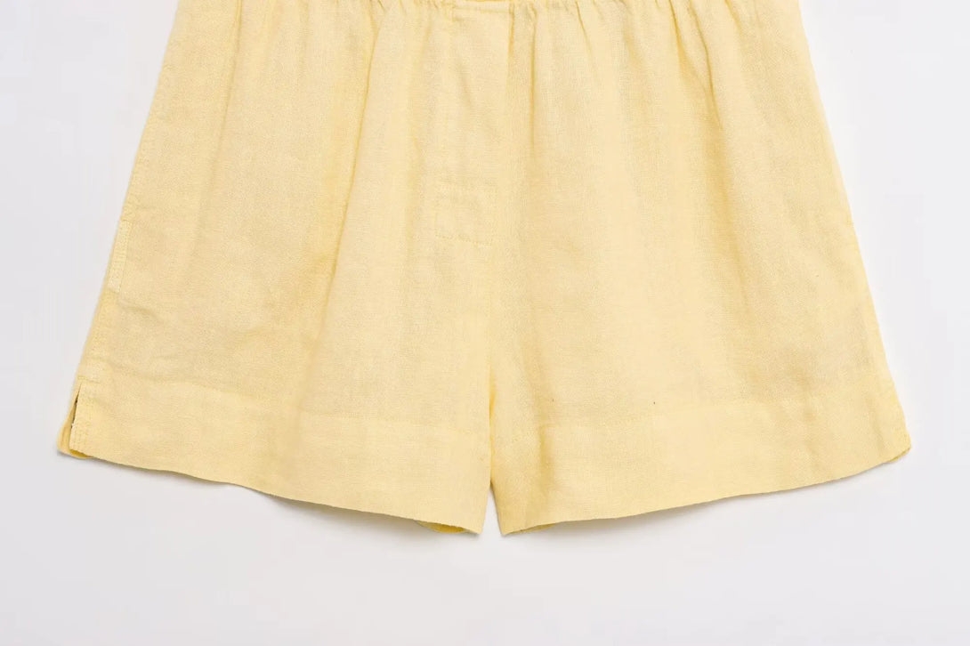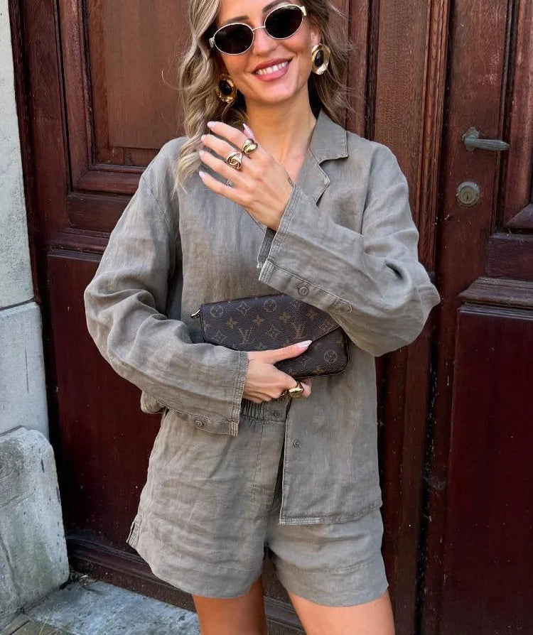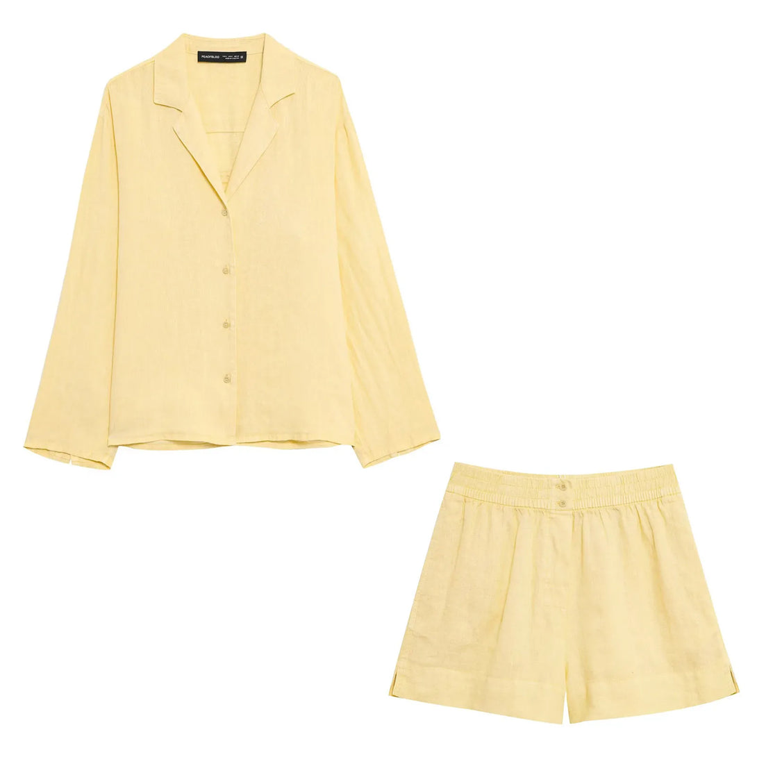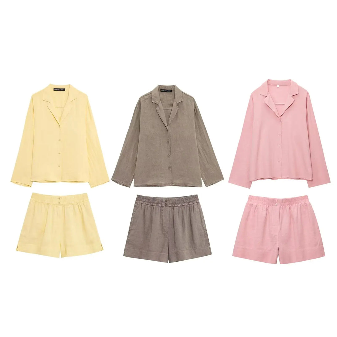 - Conforto e Elegância: A cintura elástica dos shorts garante conforto durante todo o dia, enquanto a camisa de lapela adiciona um toque de elegância.