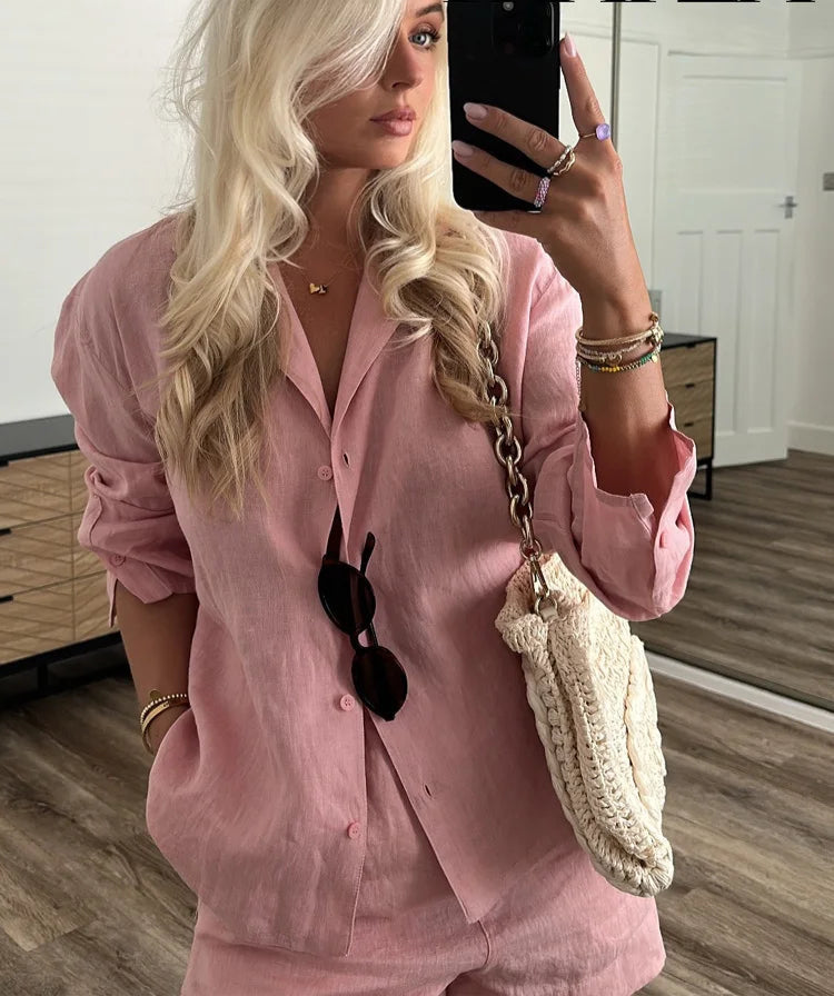 Conjunto Feminino Casual Short e Camisa Manga Longa - Sardenha