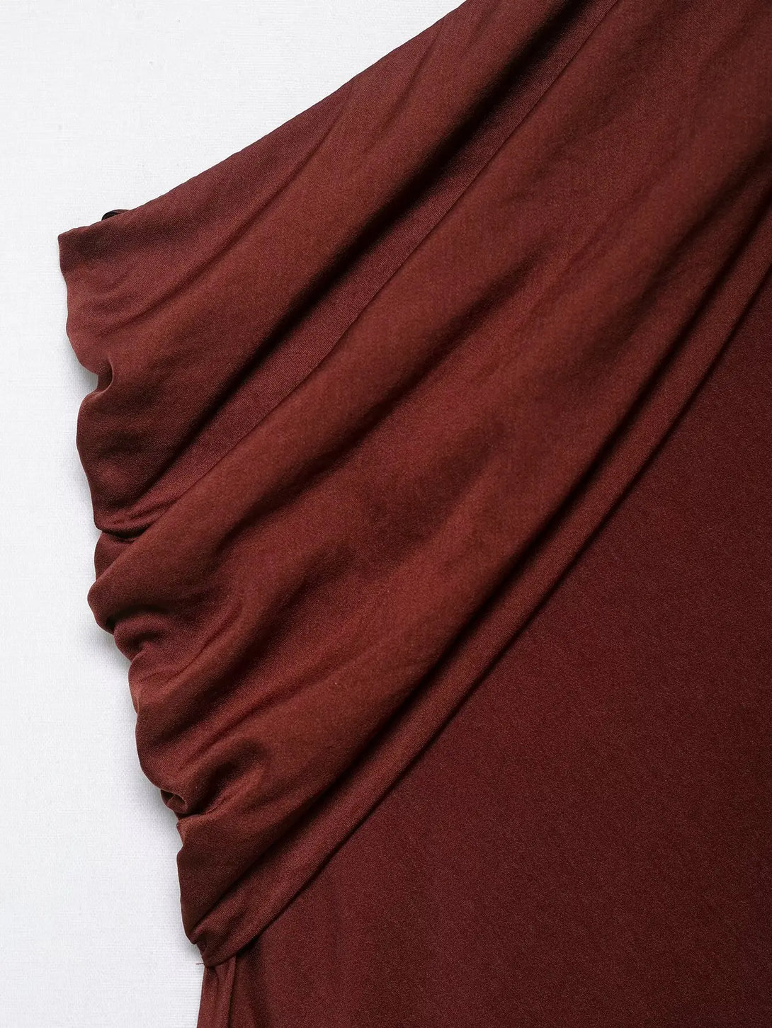 Vestido Longo Elegante Decote Assimétrico com Echarpe - Milene